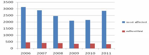 injury fatalities for the whole country decreased, but in 2011 it increase to 32,21% compared with 2010.