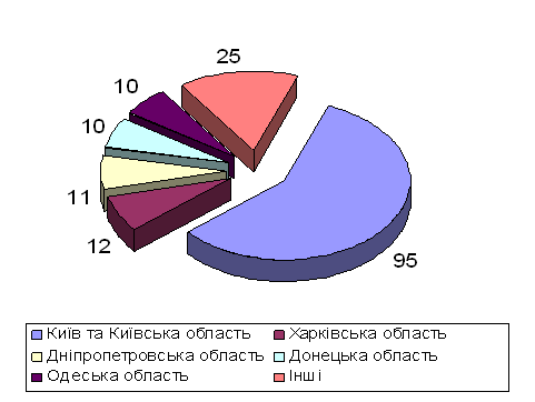 зареєстрована у м. Києві та Київській області – 95 (58%) (рисунок 1).