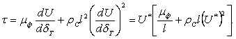 – касательное напряжение сдвига определяется по зависимости: