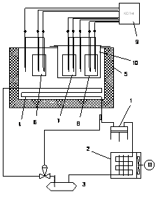 6- калориметр № 1; 7- калориметр № 2; 8- калориметр № 3; 9-