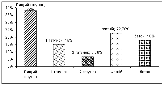 віддається хлібові вищого гатунку (51,1%), та житньому хлібу (21,3%).