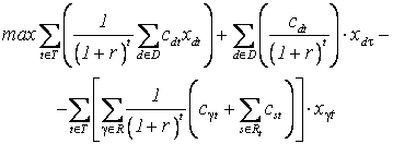оптимізації портфеля інноваційних проектів [2], яка максимізує чисту поточну