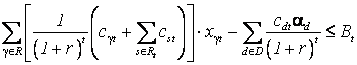 ресурсів; t – моменти часу; t – останній момент інвестиційного періоду програми.