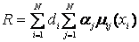 Если существует набор из i = 1…N отдельных рисков со своими текущими значениями Xi и каждому риску соответствует классификатор, то можно перейти от набора отдельных простых рисков к единому комплексному риску Ri, значение которого затем распознается с помощью стандартного классификатора. Количественное значение комплексного риска определяется по формуле двойной свертки: