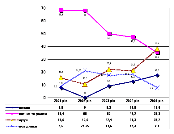 молоді є родина та друзі, а не школа. Це свідчить, на наш погляд, що вищі