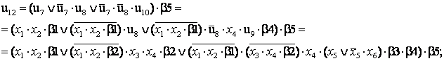 – логическим аргументам, х1–х6, а введенные булевы переменные