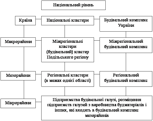 Виділимо 3 рівні побудови будівельних кластерів: в залежності від рангу