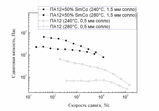 полиамида в области скоростей сдвига от 103 до 104 с-1