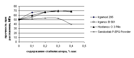 эффективными являются стабилизаторы Irgamod, Irganox (производства фирмы Ciba)