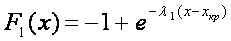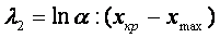 логарифмування рівнянь лівої та правої вітки кривої у точках (0; -1 + α) і (хmax; 1- α), відповідно: