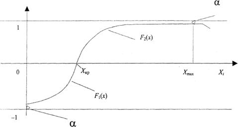 Крива другого типу убуває до значення -1+α у точці х=хmax, відповідній максимально