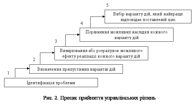 управлінських рішень є послідовністю кількох логічних кроків, наведених на рис.